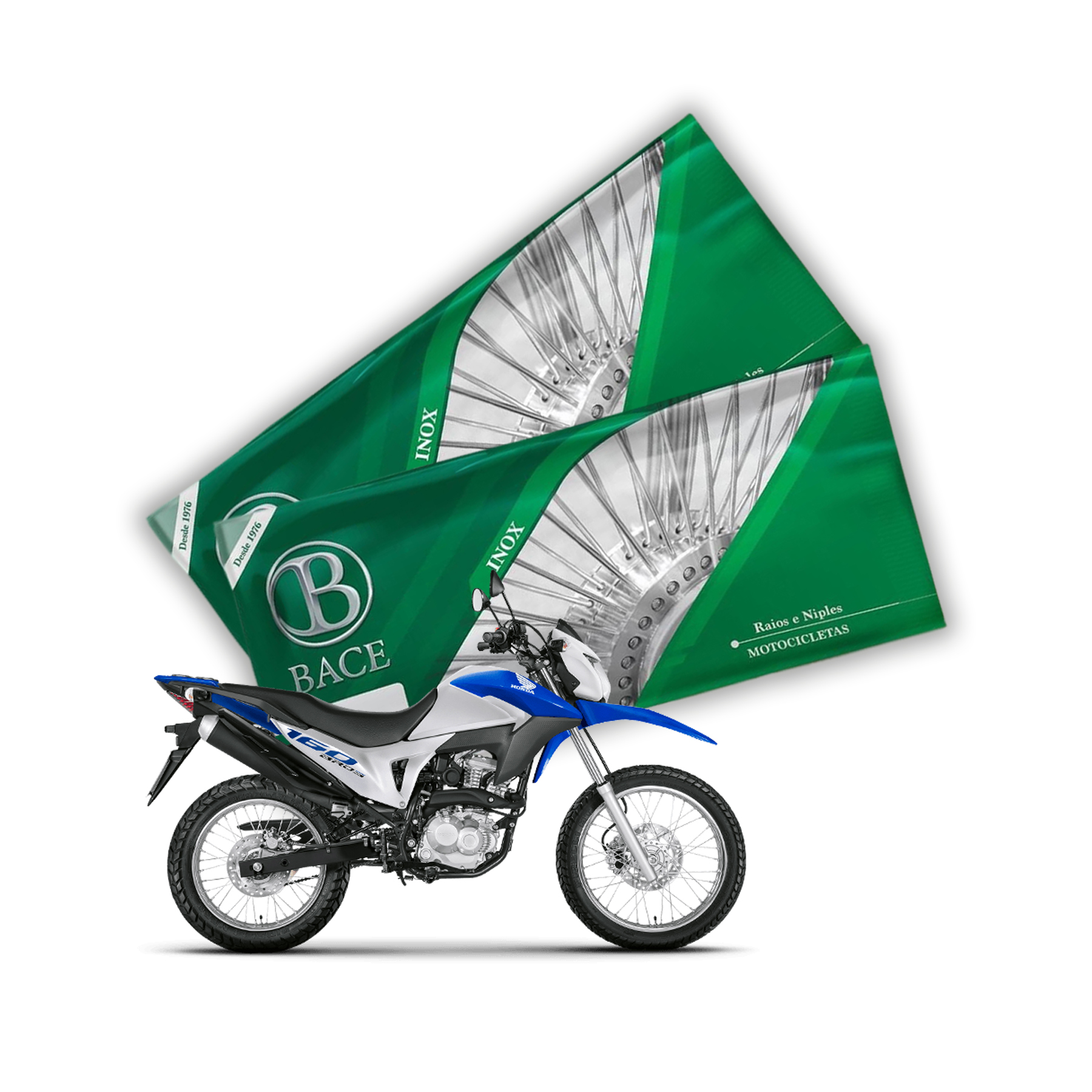 Jogo de Raios Bace em Inox 4mm Dianteiros e Traseiros - Bros 125/150/160 (Dianteiro Freio a Disco / Traseiro a Tambor)